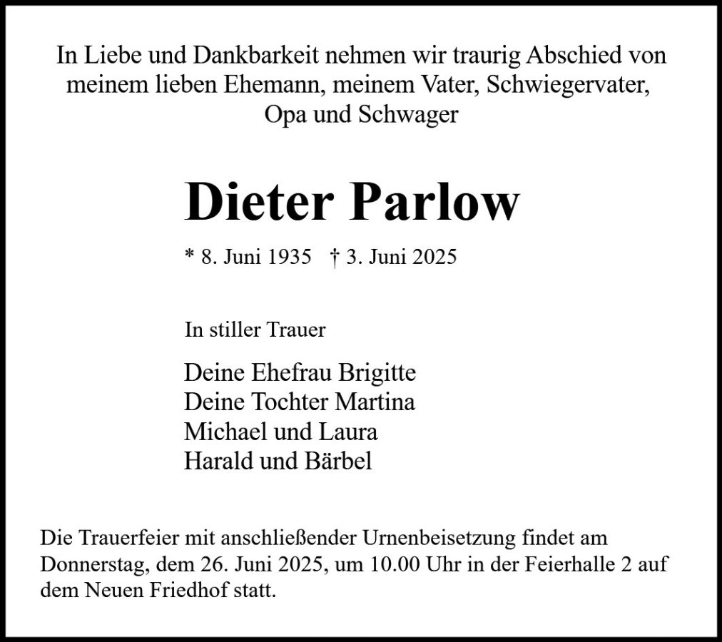 Dieter Parlowgestorben am 3. Juni 2025
